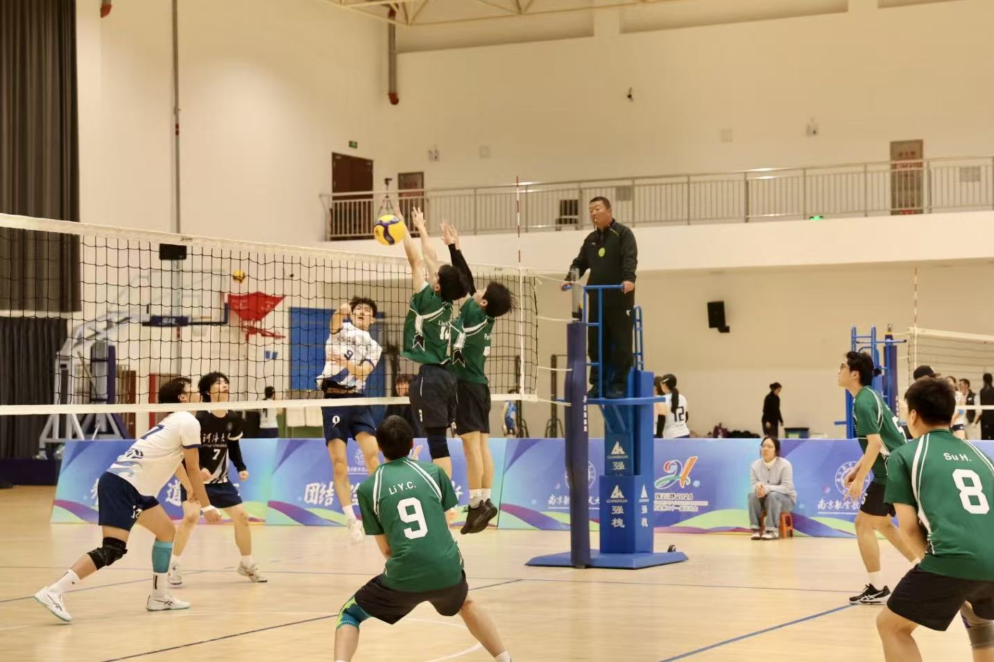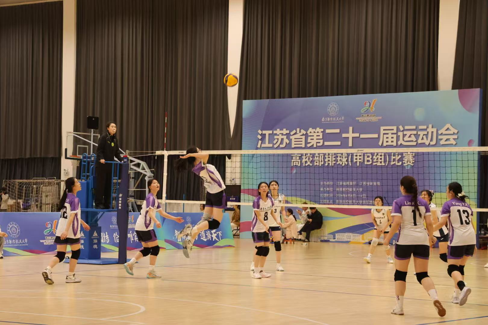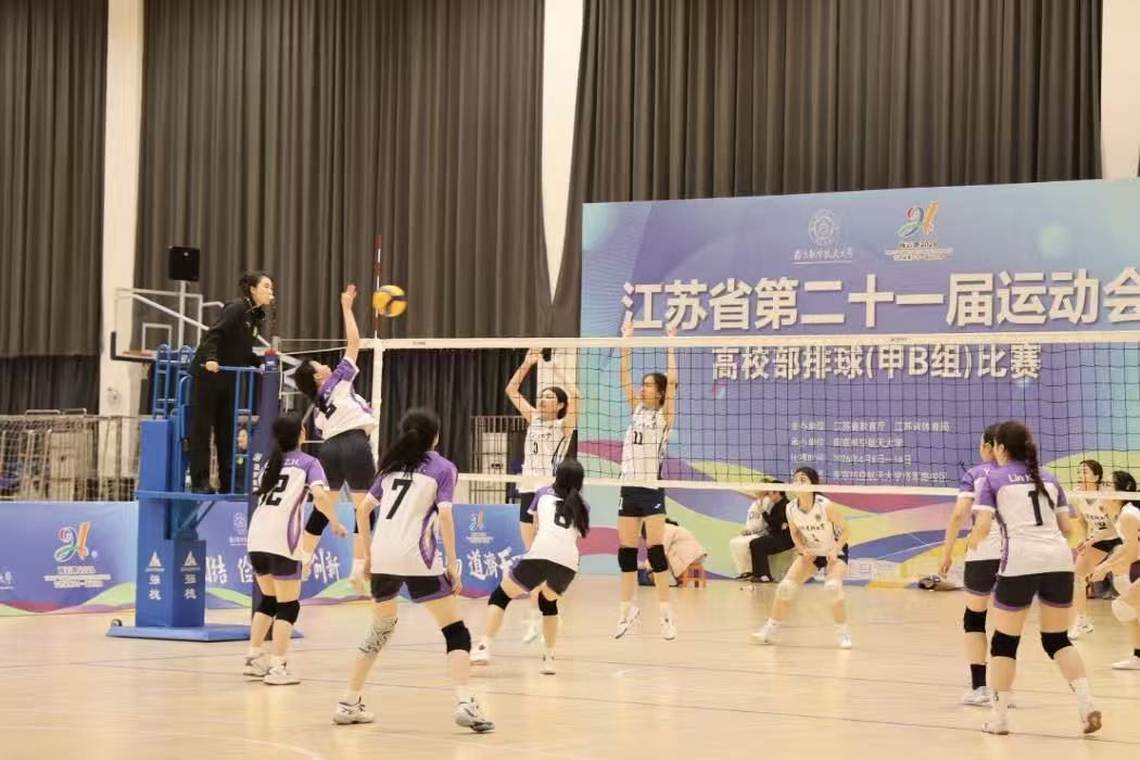 "球不落地,绝不放弃!"——这掷地有声的誓言,在四月南京航空航天大学体育馆的炽热空气中回荡。我校女排与男排的健儿们,以一次次势大力沉的扣杀、一次次奋不顾身的救球,将这句口号镌刻在了每一寸赛场之上。 4月8日至14日,江苏省第二十一届运动会高校部排球(甲B组)比赛如火如荼地展开。历经六天的激烈角逐,我校女子排球队犹如一匹黑马,从众多强队中脱颖而出,勇夺季军桂冠;男子排球队亦不甘示弱,面对劲敌,他们勇往直前,最终斩获第六名的佳绩。