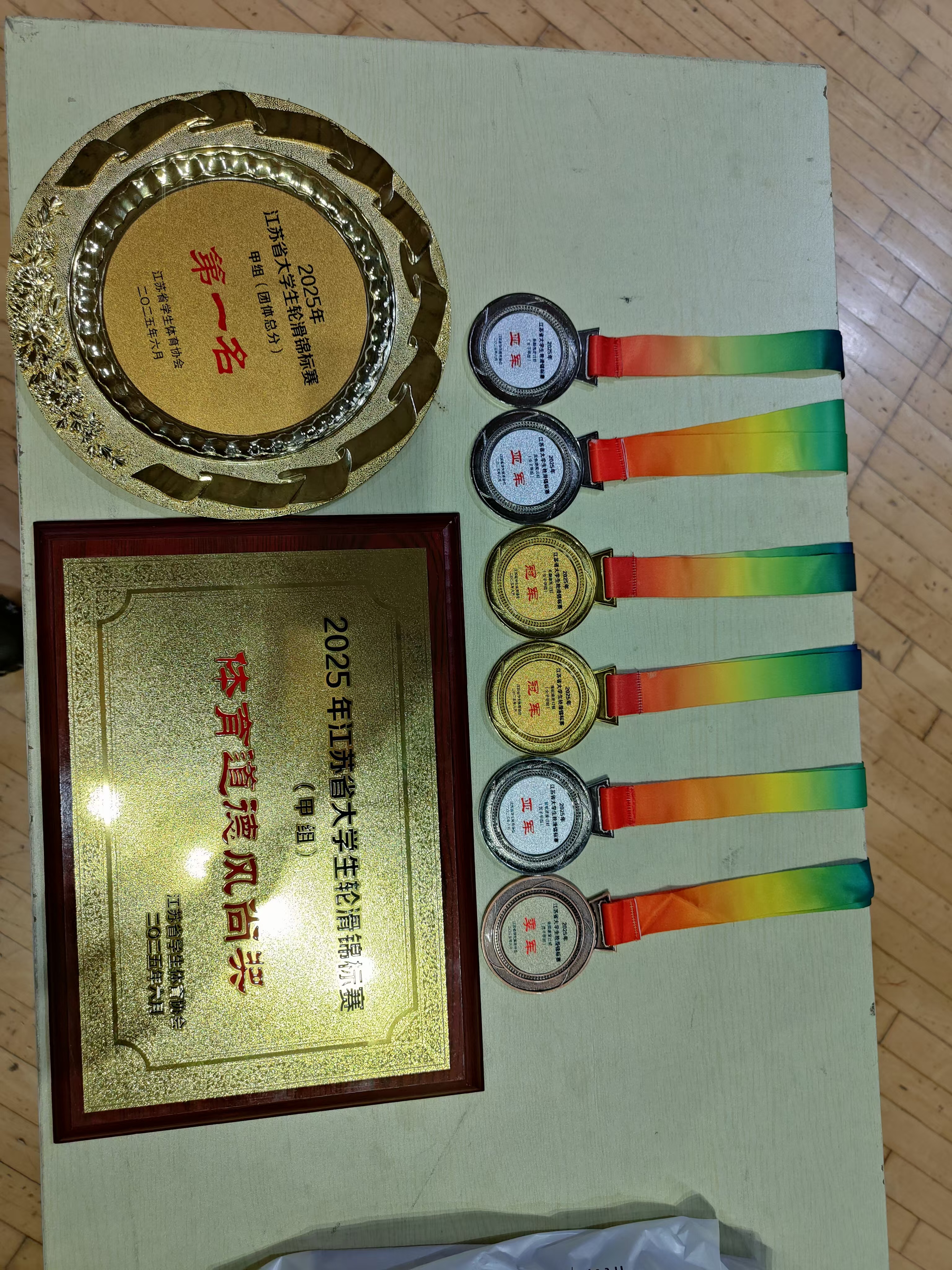 赛场上,他们用速度点燃激情,以汗水诠释拼搏。逆境中不抱怨、敢担当,困难前不回避、勇向前——每一次超越都是意志的燃烧,每一滴汗水皆为荣誉的奠基。徐子权的“引领”、韦洁霜的“蝉联”、梅康凯的“精湛”、晁鑫的“稳定”、卢俊锋的“顽强”、徐祯的“突破”……每个人都将自己的名字,写进了这场速度与信念的交响。 汗水与泪水交织,激情将“拼搏”具象,奉献让“担当”闪光。南林轮滑队展现出的坚定信念、不屈意志、团结坚守与昂扬姿态,不仅诠释了轮滑运动的魅力与体育精神的内核,更彰显了一颗为校争光、全力而战的赤子之心。 银轮照白马,飒沓向长风。 愿南林轮滑队砥砺奋进,载誉前行,续写新的荣光!